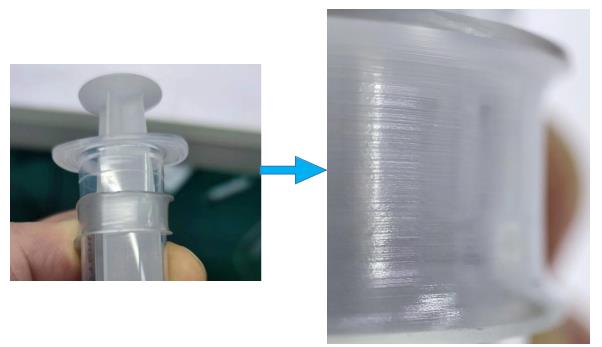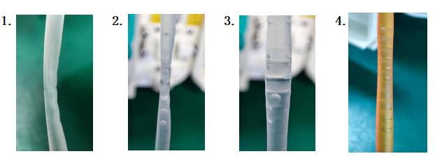 注1:我們發(fā)現(xiàn)個(gè)別輸液器在運(yùn)行一段時(shí)間后總是會(huì)產(chǎn)品數(shù)量較多的氣泡,在剪開(kāi)觀察的時(shí)候發(fā)現(xiàn),管路內(nèi)壁不是光滑的,呈長(zhǎng)條狀拉絲地密集布滿內(nèi)壁。如下圖所示:
